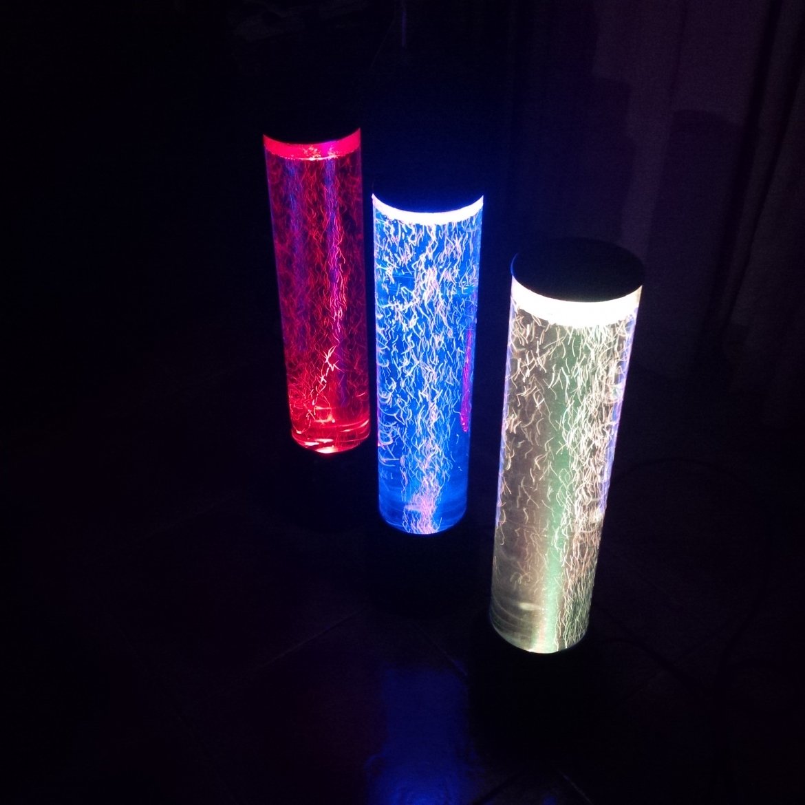Se desarrollaron 3 cilindros de burbujas y luz de acrílico para el lounge bar ubicado en Rengifo 920, Puerto Montt.