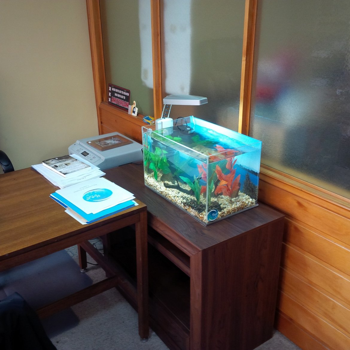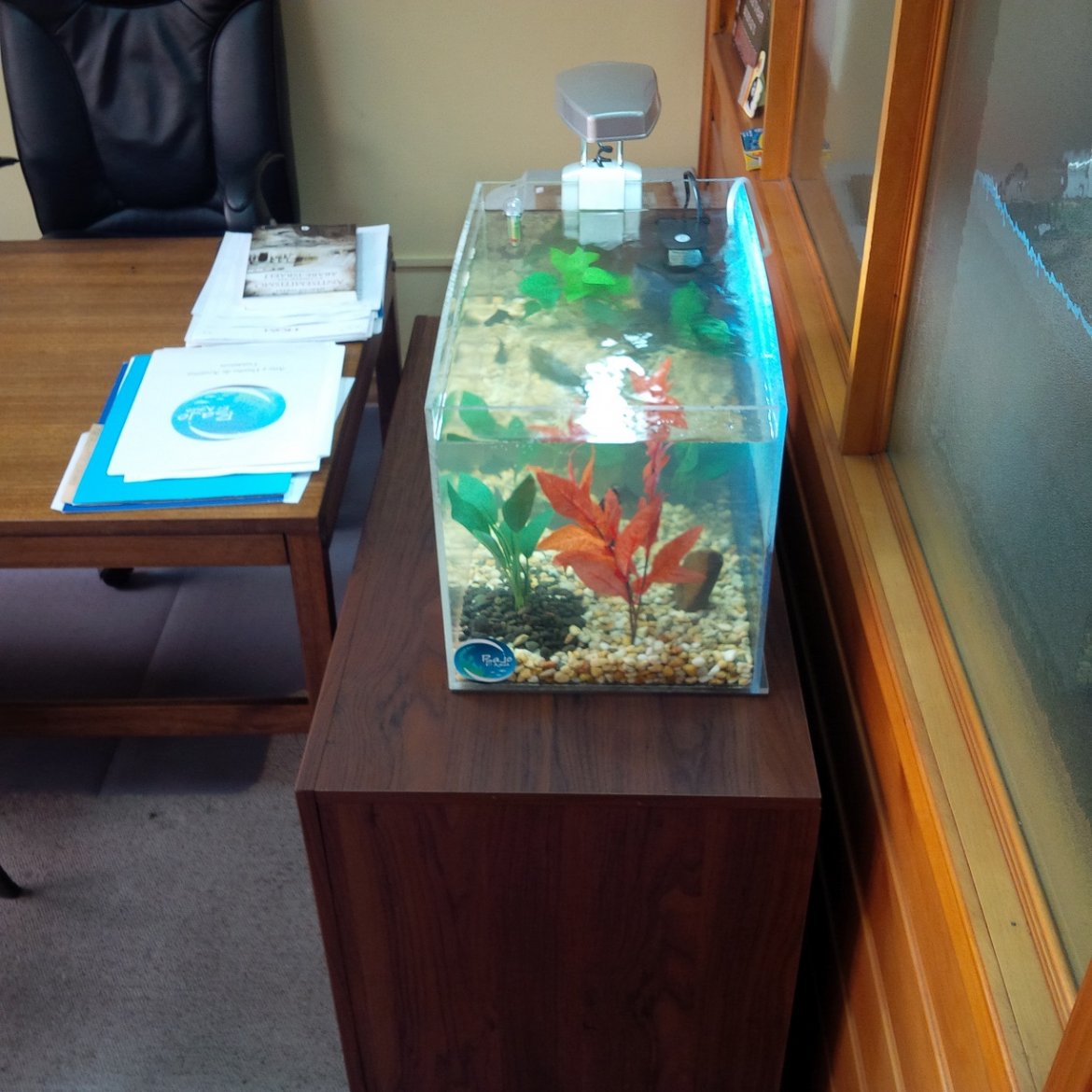 Acuario de peces de agua fría, instalado en oficina directorio.